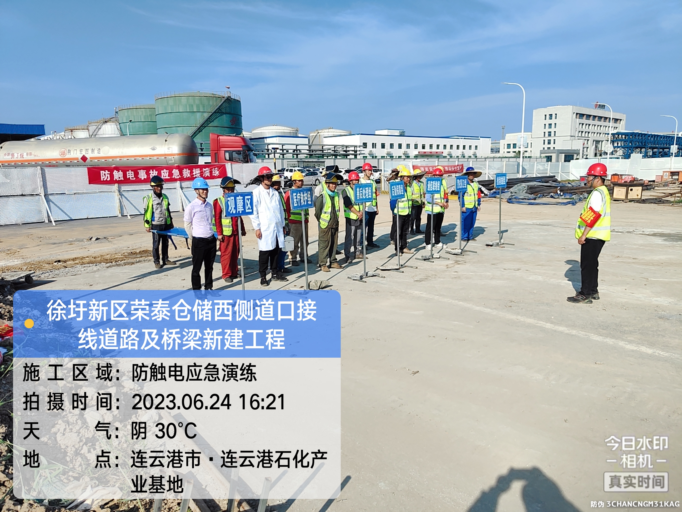 江苏海建徐圩新区荣泰仓储工程项目部举行防触电事故安全演练